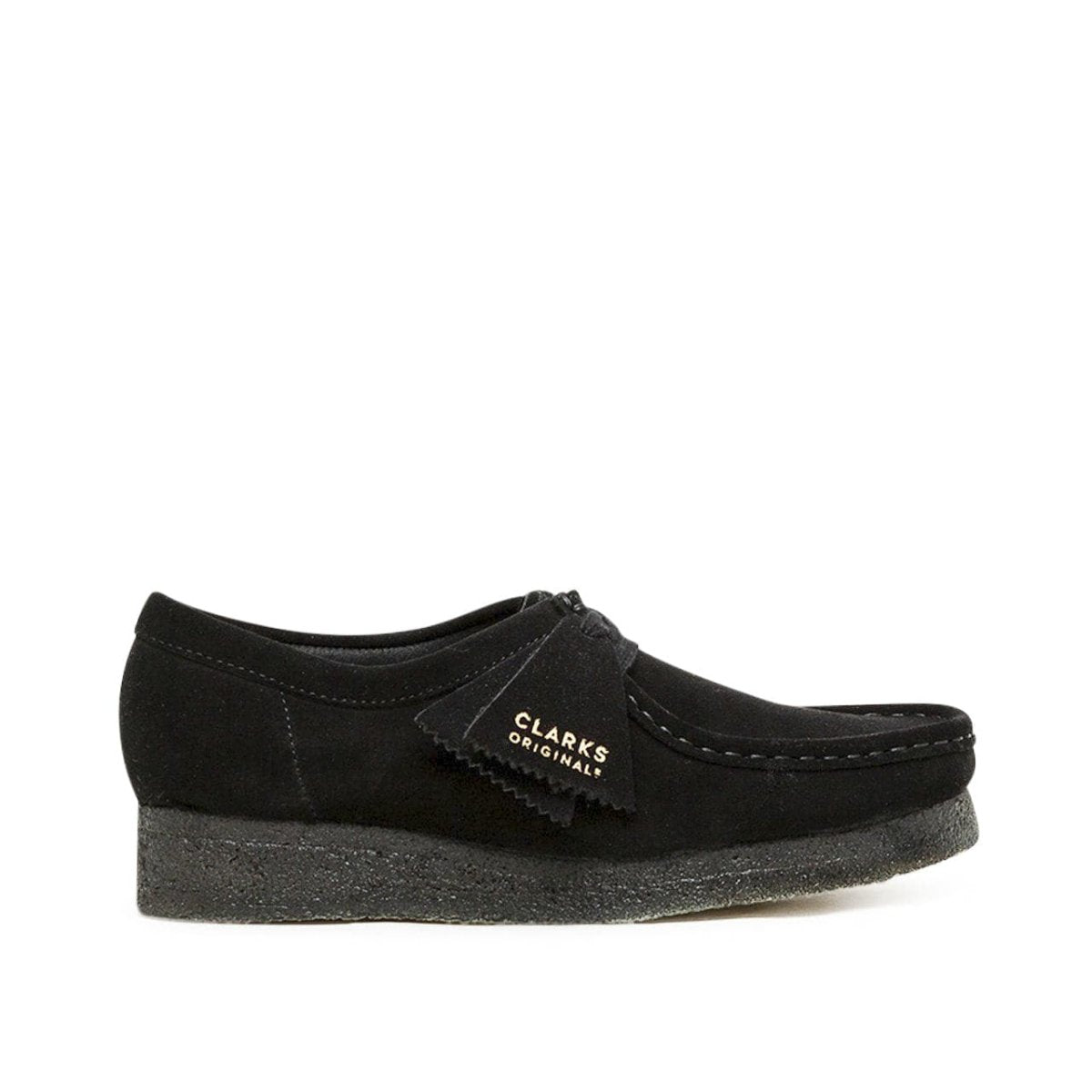 Der Klassiker in All-Black: Clarks liefert den Wallabees in kleinen Größen mit einem schwarzen Wildleder-Upper und einer passenden schwarzen Crepesohle.