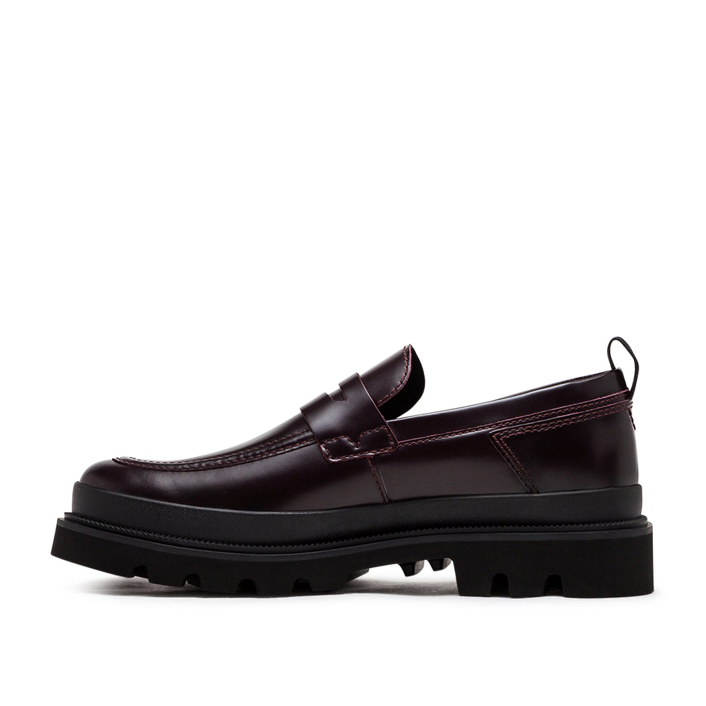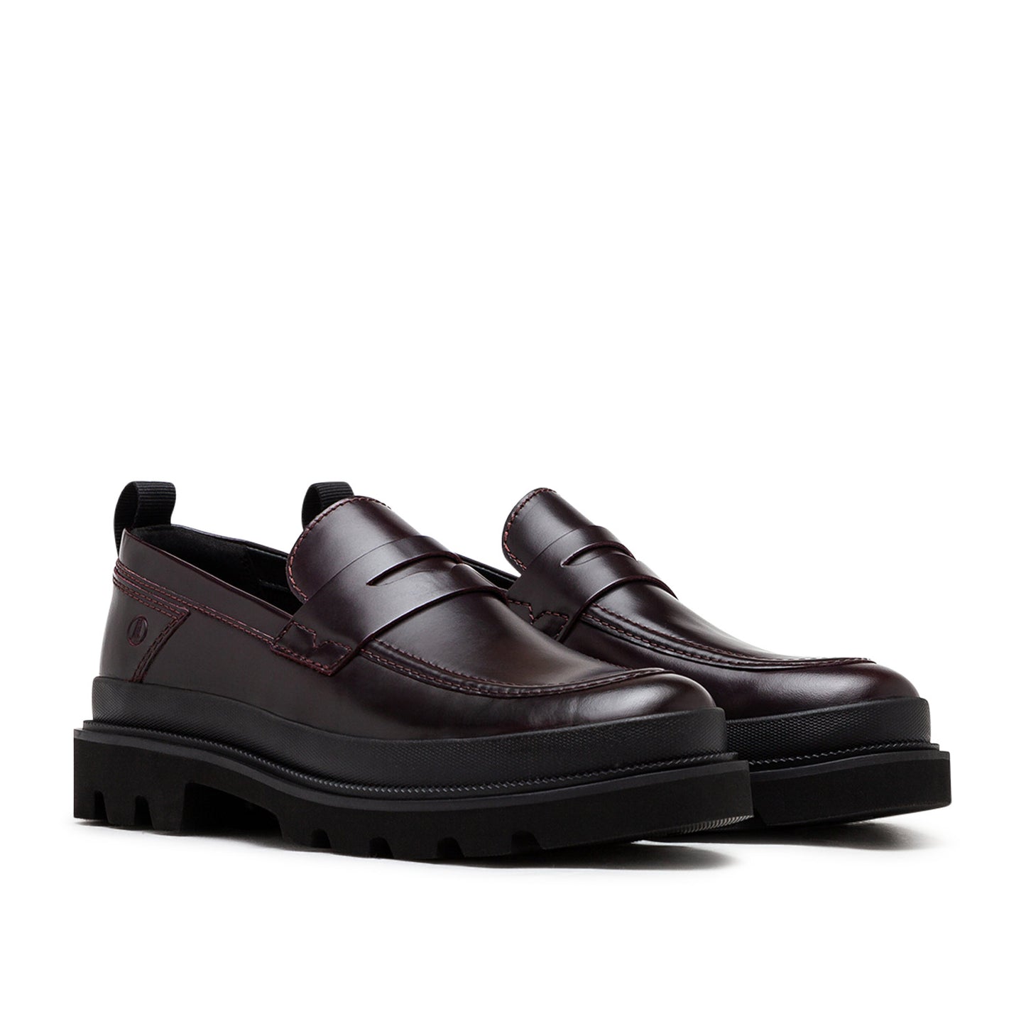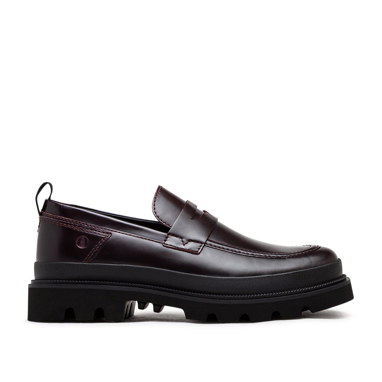 - Premium dark burgundy leather upper